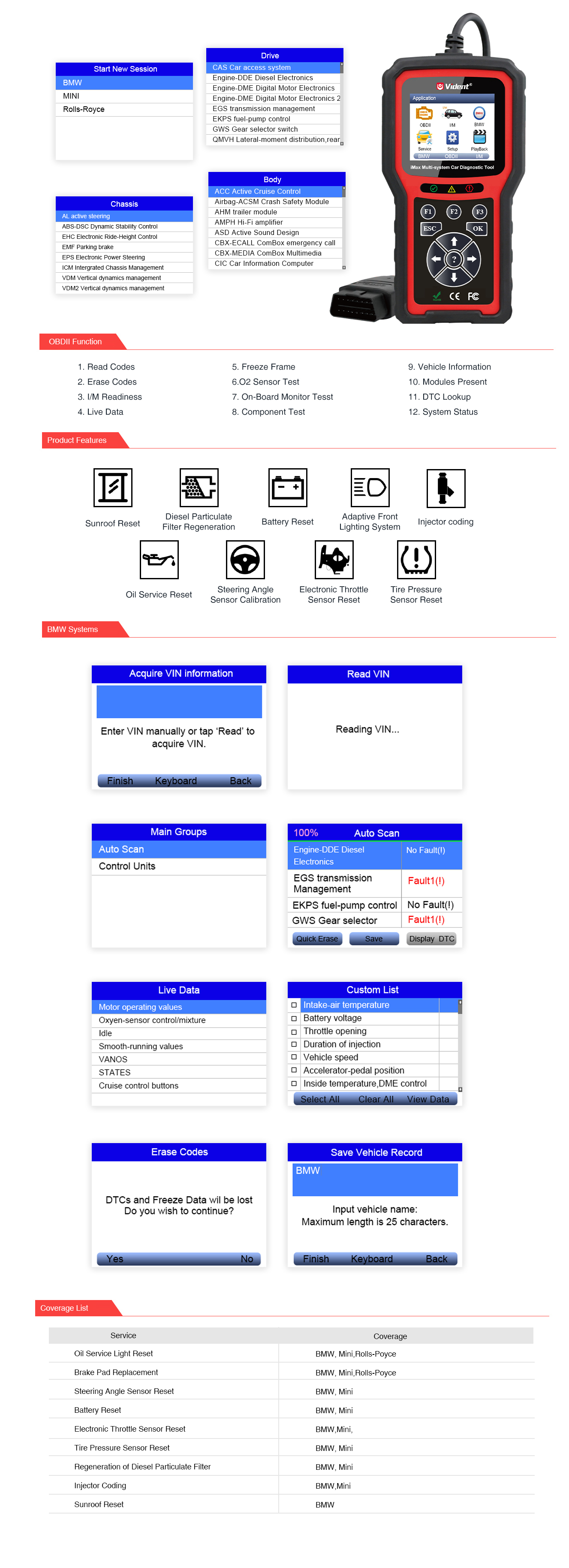 iMax4302 is designed for BMW,MINI and Rolls-Royce speciallyto perform basic and fundamental diagnosis of all systems.