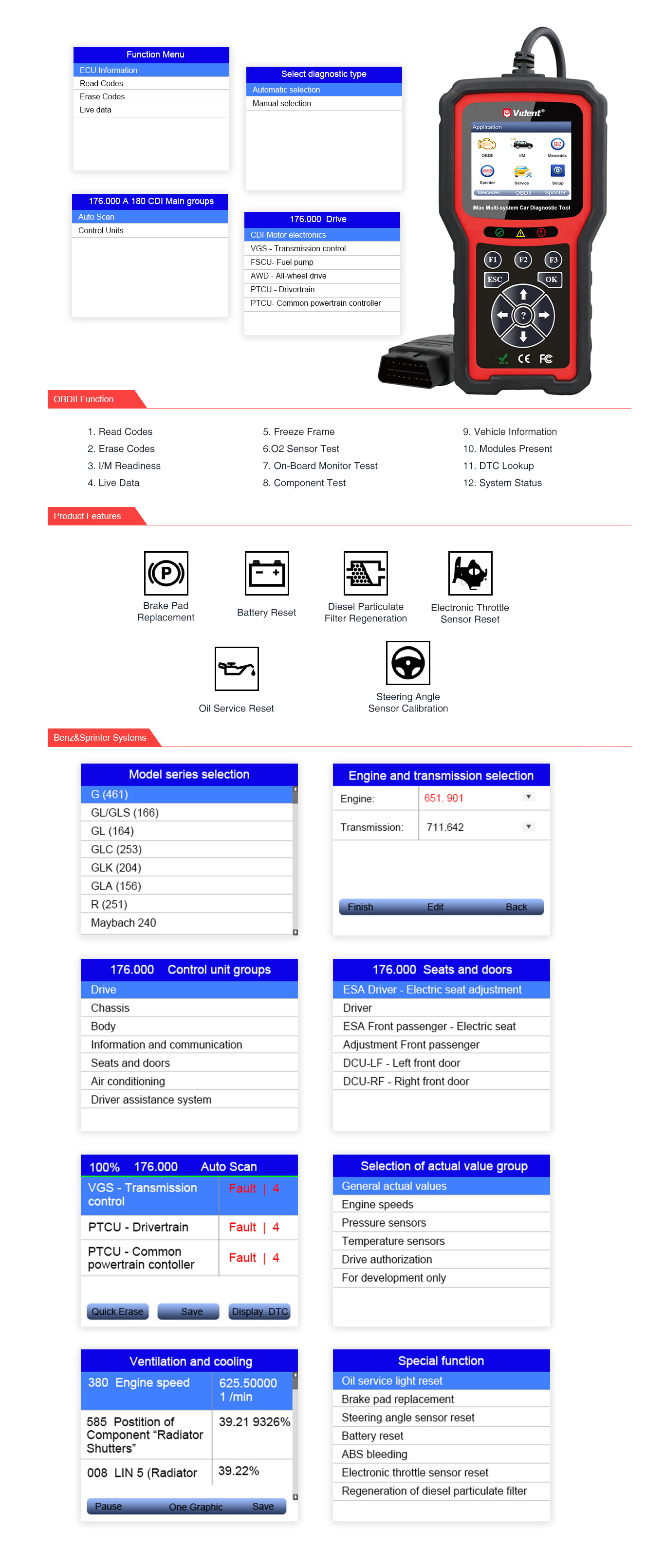 iMax4307 is designed for Mercedes Benz and Sprinterto perform basic and fundamental diagnosis of all systems.